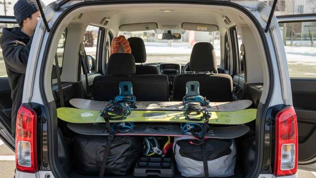 軽自動車でスノーボードを車内積みするコツ|人数や濡れ対策、固定方法まで完璧ガイド