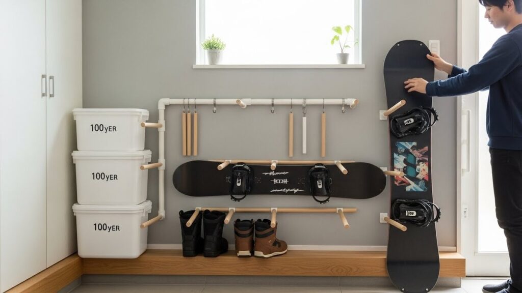 100均アイテムだけで作る!スノーボードラックを安全におしゃれ収納する方法
