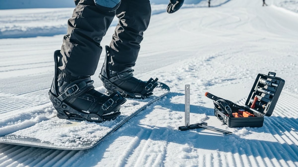 初期設定は自分の身長やブーツサイズを基に決めるのが基本です。まずは腰幅前後のスタンス幅にし、前足を約15°、後足を0°前後に設定します。これで重心移動がしやすくなり、板の中心が取りやすくなります。
