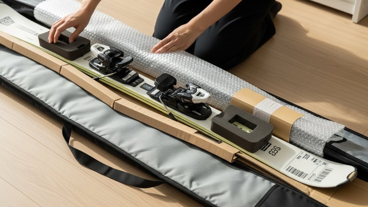 まずサイズと重さを測り、配送方法を決めます。らくらくメルカリ便やスキー宅急便など、条件に合う方法を選んでください。次に専用カバーやプチプチ、段ボールなど梱包材を準備します。ビンディングの取り扱いを決め、必要なら固定や保護を施します。